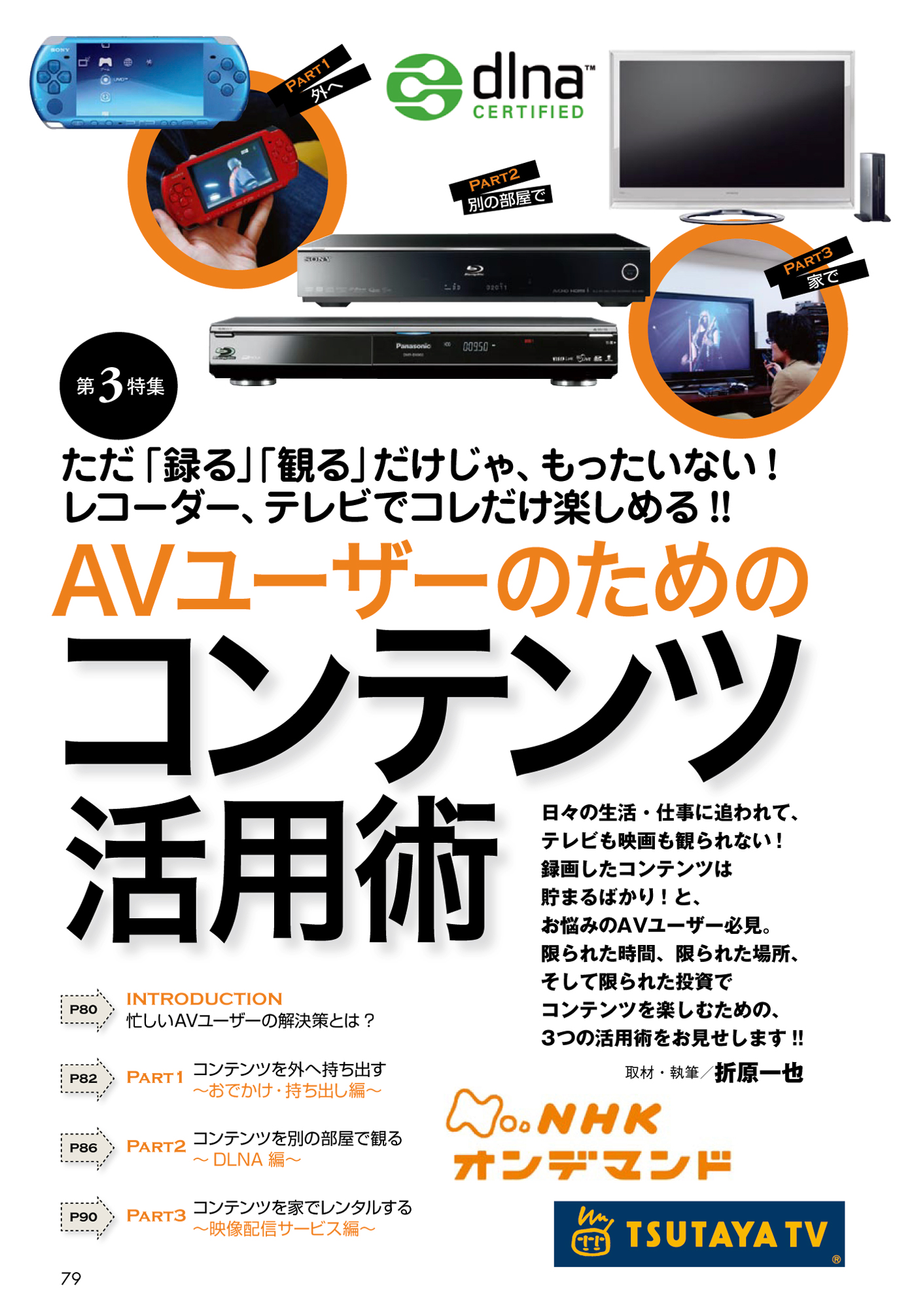 日々の生活・仕事に追われて、テレビも映画も見られない! 録画したコンテンツは貯まるばかり! そんなお悩みユーザー必見の第3特集。限られた時間、限られた場所、そして限られた投資で、コンテンツを楽しむための3つの活用術を紹介します。