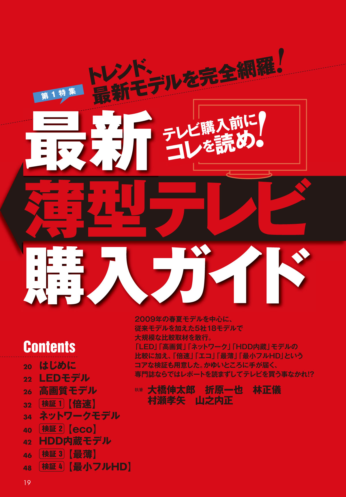 LED、エコ、ネットワーク対応、超薄型など様々なキーワードの元に、今年も魅力的なディスプレイが続々と各社から登場しています。第1特集では、それらのキーワードごとに製品を取り上げ、徹底取材を敢行! これを読めば最新ディスプレイの動向が一目でわかります。そして、あなたの欲しいディスプレイがきっと見つかります!!
