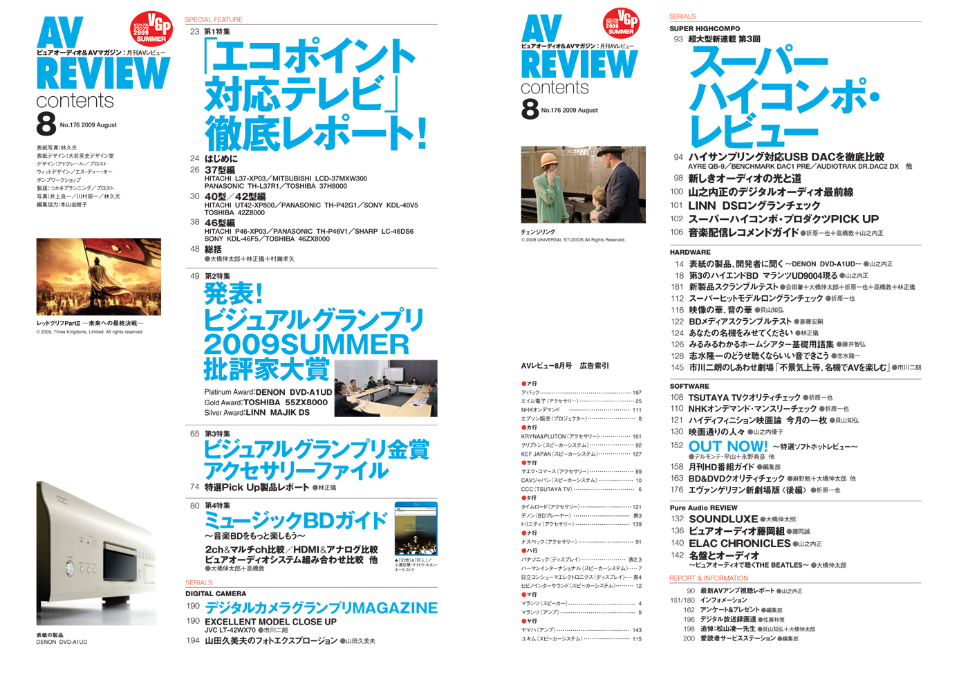 8月号は、エコポイント対応テレビの徹底レポートからビジュアルグランプリ「批評家大賞」、音楽BDソフトの特集など、バラエティに富んだ最新のAV情報が満載です。