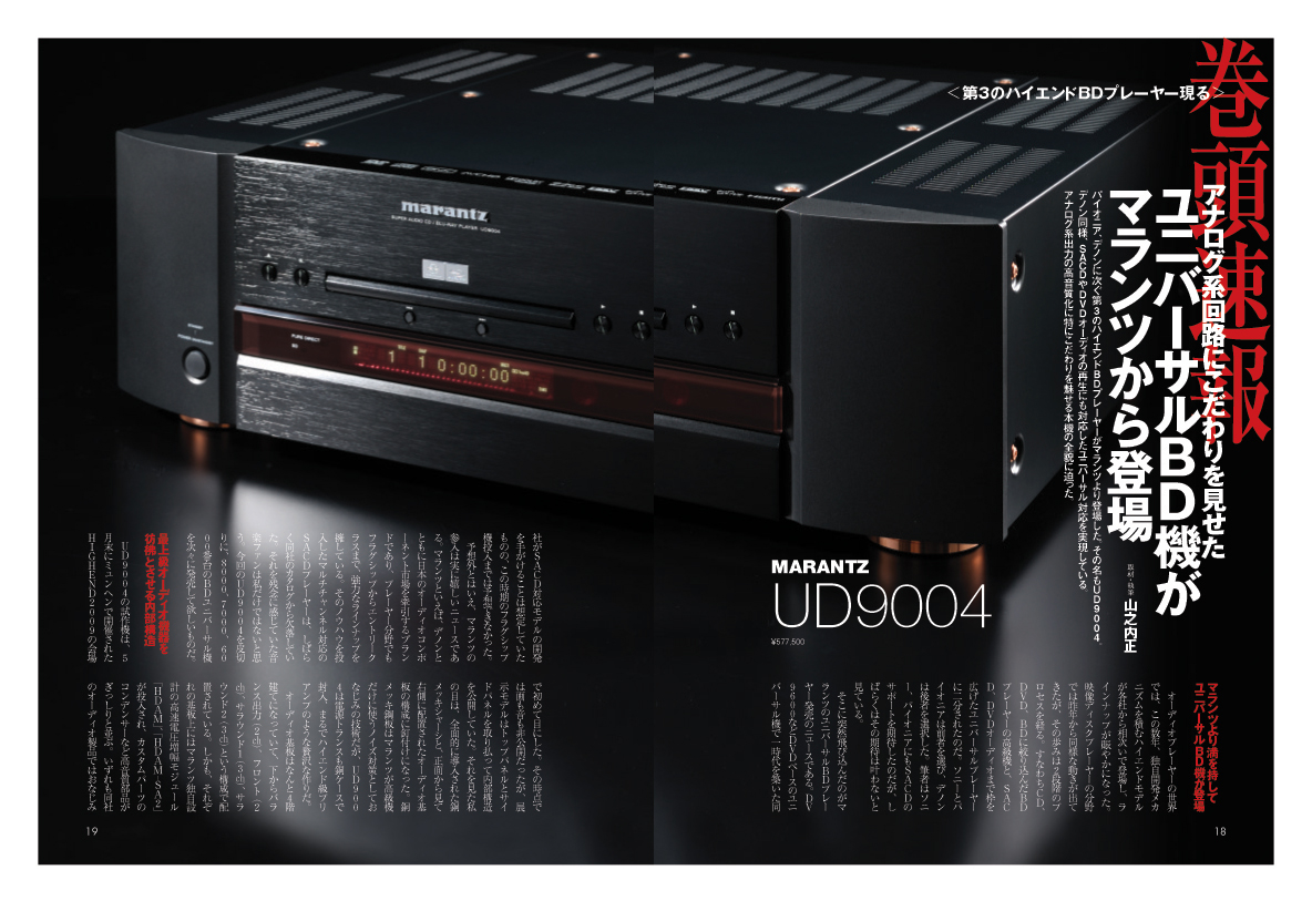 パイオニア、デノンに次ぐ第3のハイエンドBDプレーヤーがマランツより登場します。その名もUD9004。デノン同様、SACDやDVDオーディオの再生にも対応したユニバーサル対応を実現している本機。アナログ系出力の高音質化に特にこだわりを魅せるという第3のフラグシップBD機の全貌に迫りました。