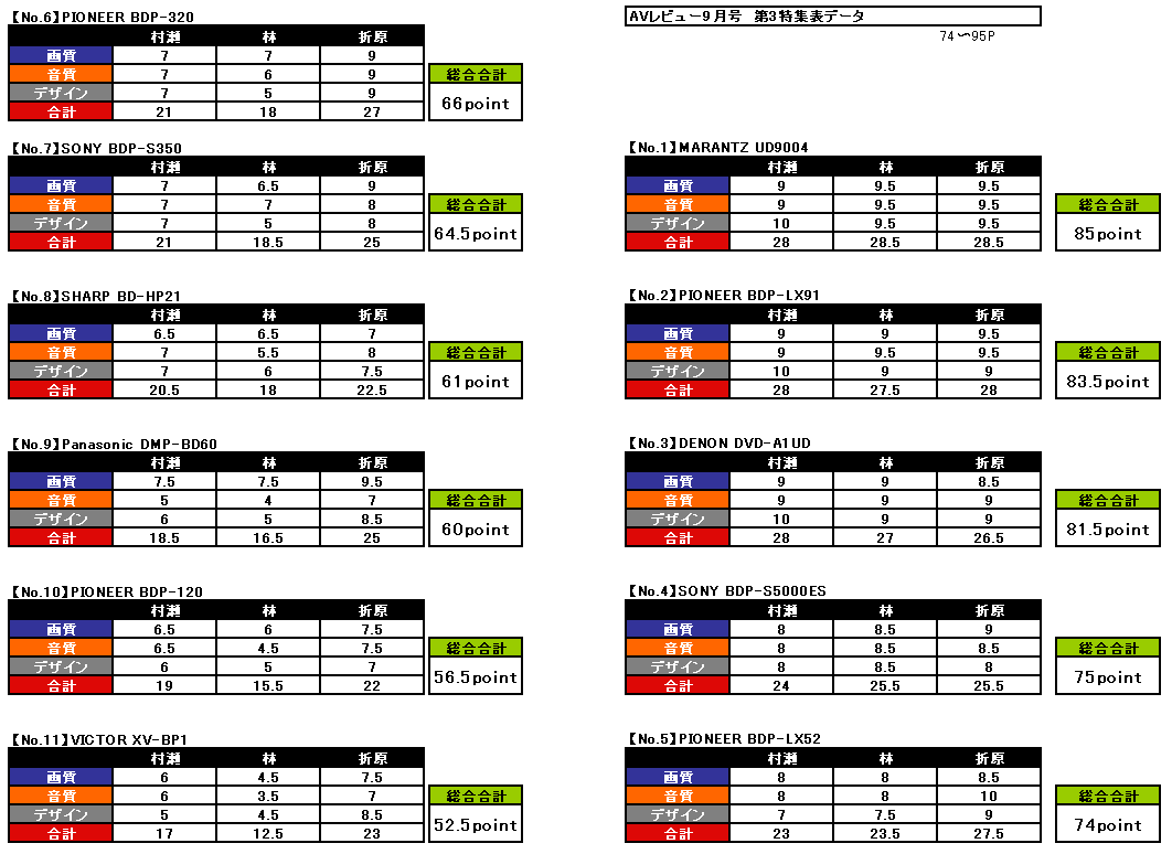 画像をクリックして拡大 ブルーレイが普及すると共に充実してきた再生専用機。新旧問わず、その数を上げれば20モデルを超え、内容もエントリーからハイエンドまで様々。本特集では、各ブランドの主力モデルを集め、3名の筆者が一斉テストします。個々の実力をジャッジしたテストに加え、各筆者がC/Pに優れたモデルを選出、座談会にて意見を戦わせた。ぜひ、この夏のBDプレーヤー選びにご参考ください! 第4特集 ネットワーク導入ガイド