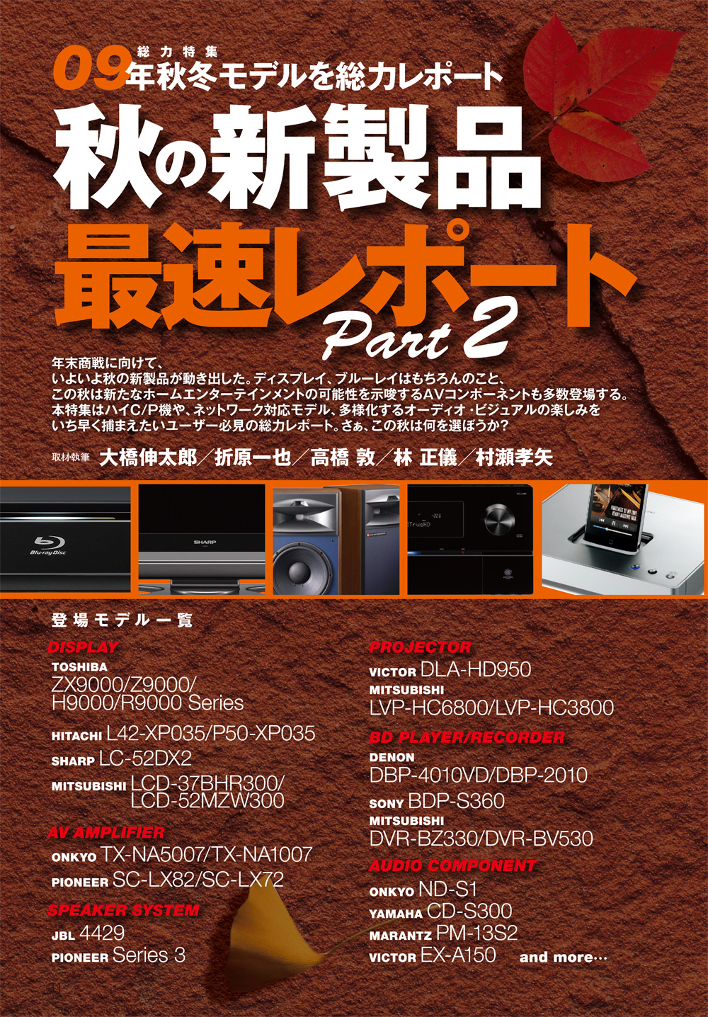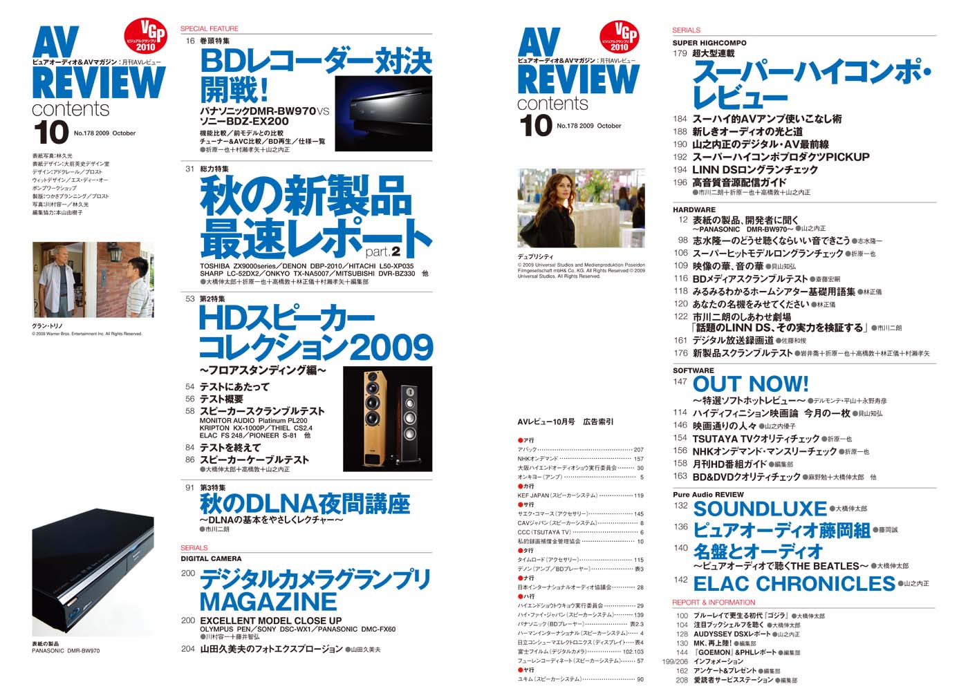 パナソニックとソニーの最新BDレコーダー・トップエンド機を徹底比較する「最強BDレコーダー対決 開戦!」、注目の新製品の詳細を最速でお伝えする「秋の新製品 最速レポートPart2」、2号連続のスピーカー大特集の後編「HDスピーカーコレクション2009フロアスタンディング編」、DLNAが一から学べる「秋のDLNA夜間講座」と、今月号もあなたのAVライフを熱くする情報をお送りしていきます。ぜひお手にとってご覧ください。
