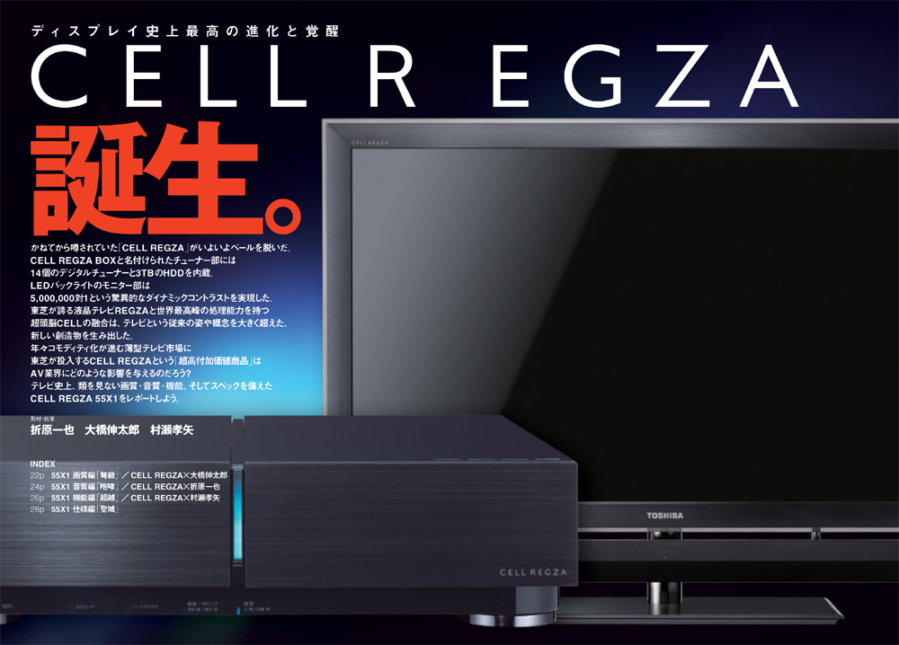 かねてから噂されていた「セルレグザ」がついにベールを脱ぎました。東芝が誇る液晶テレビREGZAと世界最高峰の処理能力を誇る超頭脳CELLの融合は、テレビという従来の姿や概念を大きく超えた、新たな創造物を生み出しました。テレビ史上類を見ない画質・音質・機能、そしてスペックを備えたCELL REGZA 55X1 をレポートします。