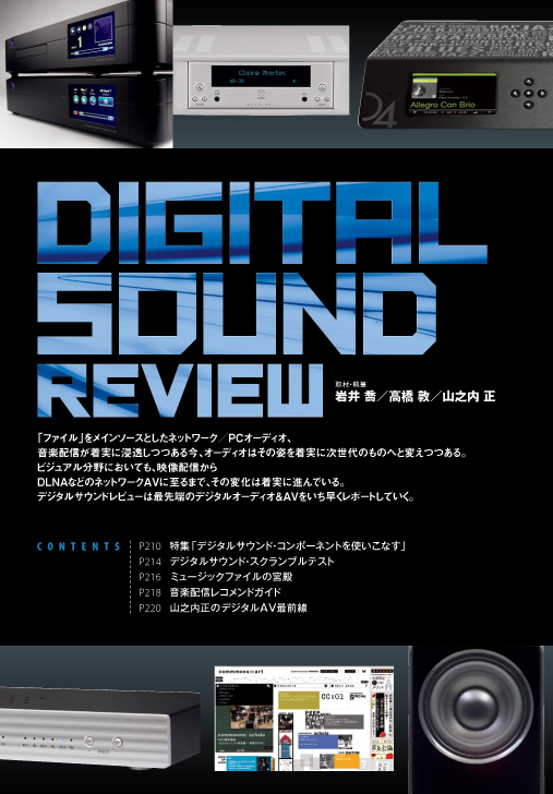 PC向けのサービスはもちろんのこと、いわゆる、テレビやAV機器でビデオ・オン・デマンドが楽しめるサービスやコンテンツが続々と増えている「動画配信」。民放各局がオン・デマンドによる「見逃し」サービスを続々と開始したことも見逃せません。放送・パッケージに続く第3の映像の楽しみ方、「配信」の今をレポートしていきます。 デジタルサウンド・レビュー盛り上がりを見せているPC/ネットワークオーディオや音楽配信の最新情報&使いこなしテクニックを紹介していくデジタルサウンド・レビュー。「デジタルサウンド特集」では注目のネットオーディオ・コンポーネントの音質&使いこなしのレビューをお届けします。また、「デジタルサウンド・スクランブルテスト」ではクリプトンの最新パワードスピーカーやノース・スター・デザインのUSB-DACをレビュー。人気連載「ミュージックファイルの宮殿」ではリッピングのハウツーについて解説します。今欲しいPC/ネットワークオーディの情報が満載の内容です。 好評連載中