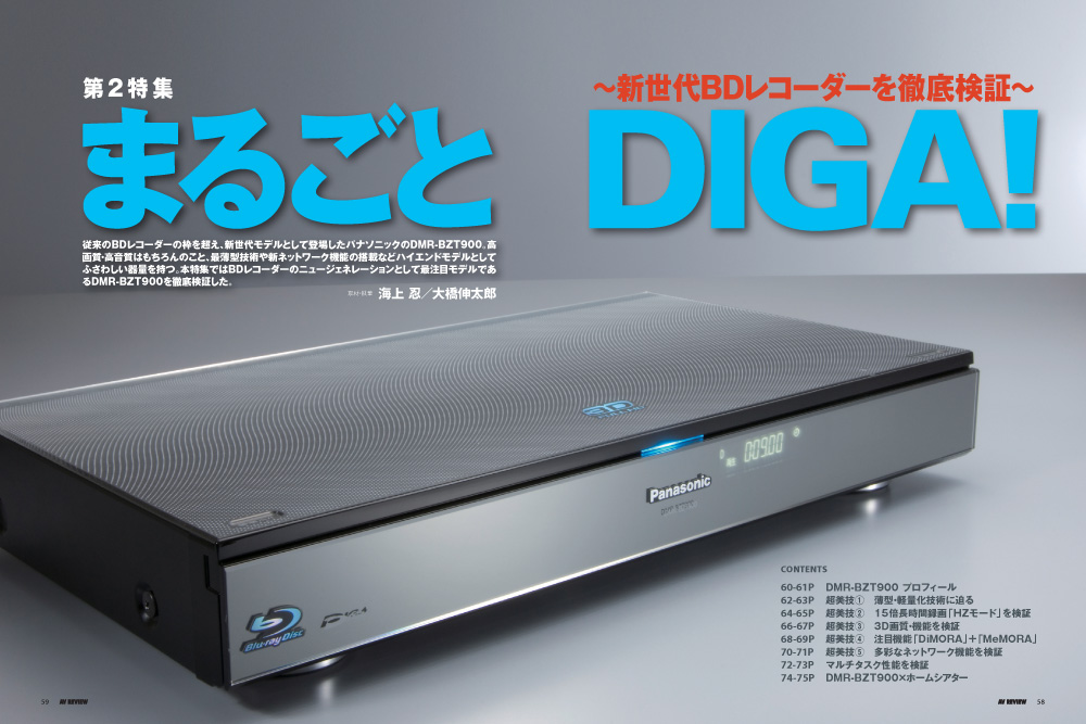 みなさんはテレビの画質・音質に満足していますか? そして、テレビの機能を十分に活用できているでしょうか。調整や設定が不十分では薄型テレビのポテンシャルを十分に引き出すことができません。また、多機能化する薄型テレビだけに、本当は便利な機能を使いこなさずに見逃している場合もあるでしょう。適切に調整すれば、テレビの画質・音質はもっとよくなります。機能を使いこなせば、テレビはもっと楽しくなります。総力特集では画質・音質の向上ポイントと機能の活用テクニックを徹底レポートしていきます。 第2特集まるごとDIGA〜新世代BDレコーダーを徹底検証〜