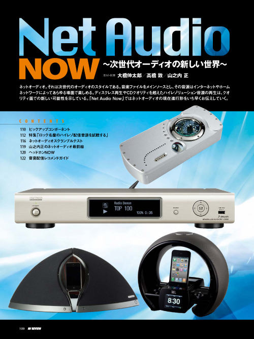 ネットオーディオ。それは次世代のオーディオのスタイルです。音楽ファイルをメインソースとし、その音源はインターネットやホームネットワークによってあらゆる場面で楽しむことができます。ディスクレス再生やCDクオリティを超えたハイレゾリューション音源は、音質面での新しい可能性を示しています。「Net Audio NOW」ではこのジャンルの現在進行形をいち早くお伝えしていきます。 好評連載中