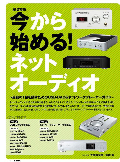 ネットオーディオにそろそろ取り組もう。もしそう考えているなら、エントリーからミドルクラスで価格を超えたパフォーマンスを誇る製品が続々と登場している今は、まさにネットオーディオの始め時です。今回の特集では、最初の1台にまさにうってつけの、魅力的なUSB-DAC、ネットワークプレーヤーを紹介していきます。 第3特集「批評家賞」議事録