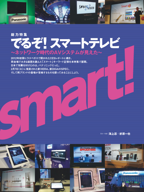 2012年初頭にラスベガスで開かれたCESでは、多くのメーカーが「スマート」をテーマとした製品を発表しました。本特集では、CESレポートと合わせて、「スマート」をキーワードに記事を展開します。スマートを強く意識したパナソニックの新ディーガ、新ビエラについても、そのスペックや機能を読み解きながら、その全貌をレポートしていきます。 巻頭特集CES 2012 詳細レポート