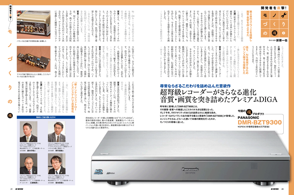 昨年秋に登場した「DMR-BZT9000」は、その画質・音質への徹底したこだわりが大きな話題となりました。そして2012年、クオリティへの飽くなき探求が、また1つの傑作レコーダー「DMR-BZT9300」を生みました。エンジニアたちは、どのような想いでBZT9300を生んだのか。モノづくりの現場に迫りました。 好評連載中