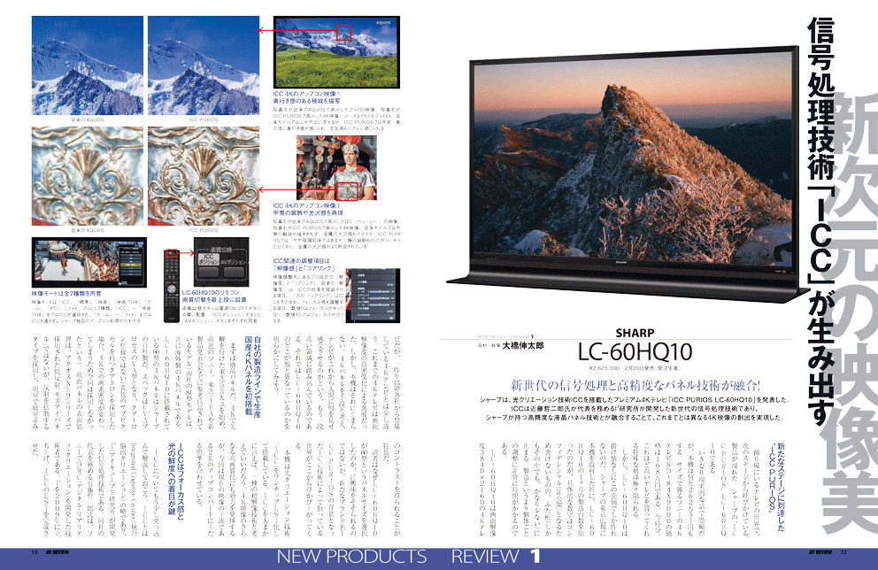 〜本誌執筆陣8名が優秀クオリティBDを厳選する AVファンが欲するBDとは何か。それは最高の画質と最高の音質を備えた優秀クオリティ盤に他なりません。細部まで緻密に描き出すフルHD映像と、圧倒的な臨場感を演出するサラウンドこそがAVファンの至上命題なのです。この際、作品性なんて二の次でいいじゃないか。映像と音のクオリティが結実した迫力とリアリティ、そして美しさが堪能できる2012年発売のBDを本誌執筆陣が厳選しました。 巻頭新製品シャープ ICC PURIOS LC-60HQ10