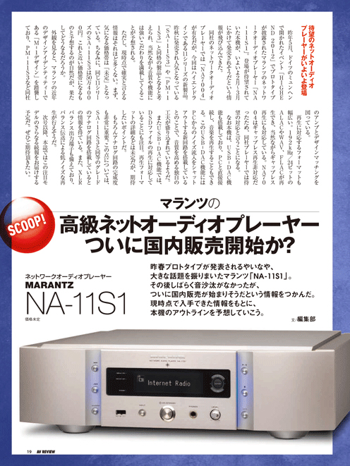 2012年5月に独ミュンヘンで開催された「HIGHEND 2012」にて、プロトタイプが披露されたマランツの高級ネットオーディオプレーヤー「NA-11S1」。登場が待望されていた本機が、いよいよ正式に姿を現しました。ギリギリで入手した最新情報を独占スクープします。 好評連載中