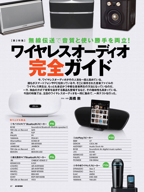 システムの入れ替えや高い機器を買うことがクオリティアップ、と決めつけていませんか? 誰だって、最新のシステムや評判の良い高級品を使ってみたい、買ってみたい。でもその願いがいつも叶うわけではありません。厳しいご時世、いま手元にあるシステムを骨の髄まで愛して、使いこなして、画質・音質を向上させる。これこそがオーディオ・ビジュアルにおけるクオリティアップの本道なのです! 総力特集では、0円でできることから数十万円を投資するものまで、画質・音質を向上させる50以上のクオリティアップ術を掲載しました。バラエティに富んだ極意50選をお楽しみ下さい!! 第2特集ワイヤレスオーディオ完全ガイド