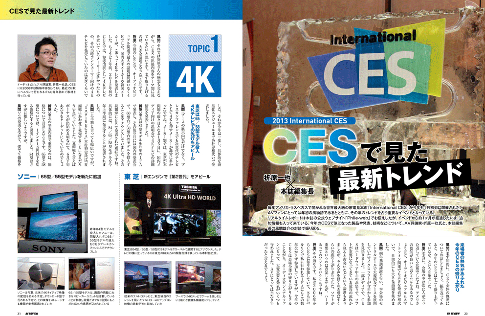 米国・ラスベガスで毎年開かれる世界最大級の家電見本市「International CES」が、今年も1月初旬に開催されました。AVファンにとっては年初の風物詩であると同時に、その年のトレンドを占う重要なイベントでもあります。巻頭特集では、追加情報を交えつつ、評論家・折原一也と編集長・風間雄介が2013年のCESを振り返ります。 好評連載中