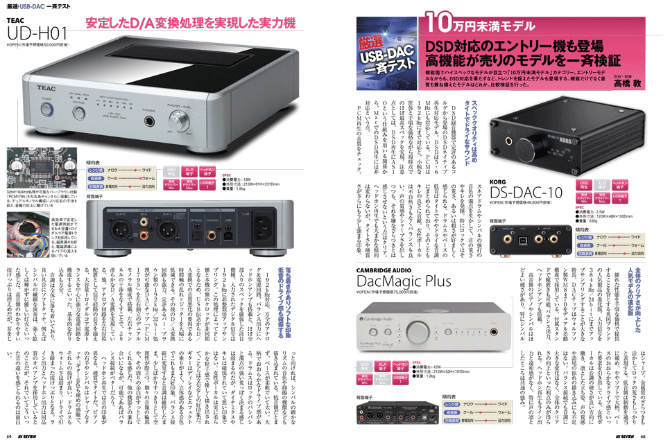 2013年は、4K/8K技術の今後を大きく左右するターニングポイントになるでしょう。既報の通り、総務省では4K/8K放送の早期実現に向けてオールジャパンでの推進体制を整備しており、早ければ今年5月にも、関係事業者が取り組むべき目標と時期を定めたロードマップが策定される予定です。そして放送だけでなく、コンシューマー機器における4K化の流れも加速しています。先日発表された4Kブラビアを皮切りに、今年は対応のAV機器が続々と控えています。まさに私たちは、映像新時代の目撃者になろうとしているのです。総力特集は「4Kのすべて」と題し、最新の4Kテレビレポート、4K基礎知識、関連企業へのインタビュー、筆者&読者アンケートなど、様々な切り口で4Kの「今」を取り上げました。 第2特集厳選 USB-DAC一斉テスト〜旬のモデルが集結!〜