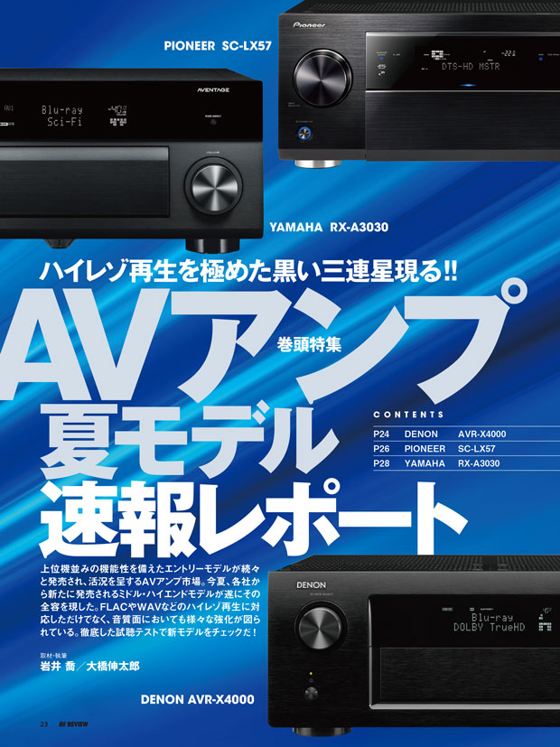 〜ハイレゾ再生を極めた黒い三連星現る!! 上位機同等の機能を備えたエントリーモデルが続々と発売され、活況を呈するAVアンプ市場。そして今夏、各社から新たに発売されるミドル・ハイエンドモデルがその全貌を現しました。FLACやWAVなどのハイレゾ再生に対応しただけでなく、音質面での強化も注目ポイント。発売前の新モデルを徹底的にチェックしました。 第2特集4KマスターBDの実力に迫る。