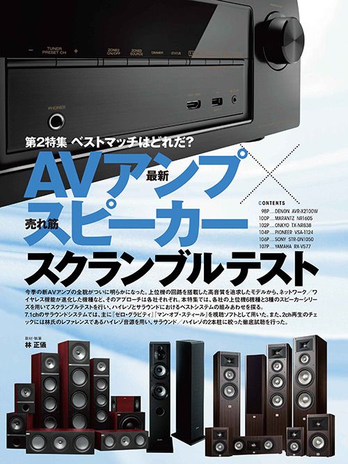 スクランブルテストを決行! 今季の各社の最新AVアンプが出揃いました。エントリー/ミドルクラス併せて総勢12モデルの中から各社の上位機6種とロングセラーモデルのスピーカー3種の組み合わせチェックを行った「最新AVアンプ×売れ筋スピーカー スクランブルテスト」を掲載。サラウンドだけでなく、ハイレゾ再生の音質もチェックしています。 連載SPECIAL FEATURE