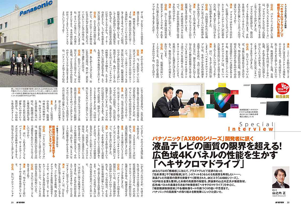 パナソニック・インタビュー 巻頭連載「SPECIAL FEATURE」では、パナソニックの4Kビエラ「AX800シリーズ」の開発者インタビューを実施しました。広色域パネルの真価を引き出す映像技術「ヘキサクロマドライブ」を中心に、「暗部階調制御技術」や各種映像モードの画づくりの狙いや思想まで、パナソニックの高画質への取り組みについて山之内 正氏が徹底取材しました。 好評連載中