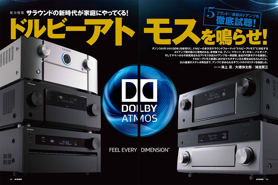ドルビーアトモスを鳴らせ! デノン「AVR-X4100W」を皮切りに、ドルビーの多次元サラウンドフォーマット”ドルビーアトモス”に対応するAVアンプ群が続々と発売します。本特集では、デノン、マランツ、オンキヨー、パイオニア、そしてヤマハから今秋発売されるアトモス対応AVアンプを一斉試聴。各社の代表モデルを先発し、ドルビーアトモス音源におけるマルチチャンネル再生はもちろんのこと、2ch音源のステレオ再生まで、アンプに求められるサウンドのクオリティを検証しました。 第2特集今聴くべき高音質音源はコレ!