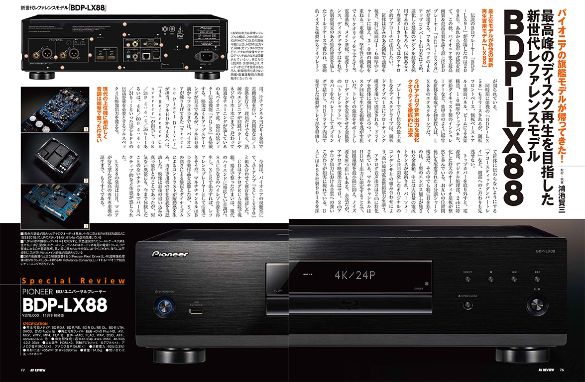 新世代レファレンスモデル! 2008年に発売されたBDプレーヤー「BDP-LX91」の誕生から6年、ディスク再生の雄・パイオニアが再び高級BDプレーヤーが投入されました。最新の4K超解像出力機能を搭載し、SACD/DVD-Audio/ネットワークなどコンパチビリティを実現しました。そして2chの再生クオリティを徹底的に磨き上げたサウンド。LX91の凌駕を目指した新レファレンス機の開発者に話を聞きました。 巻頭新製品今秋も新製品ラッシュ