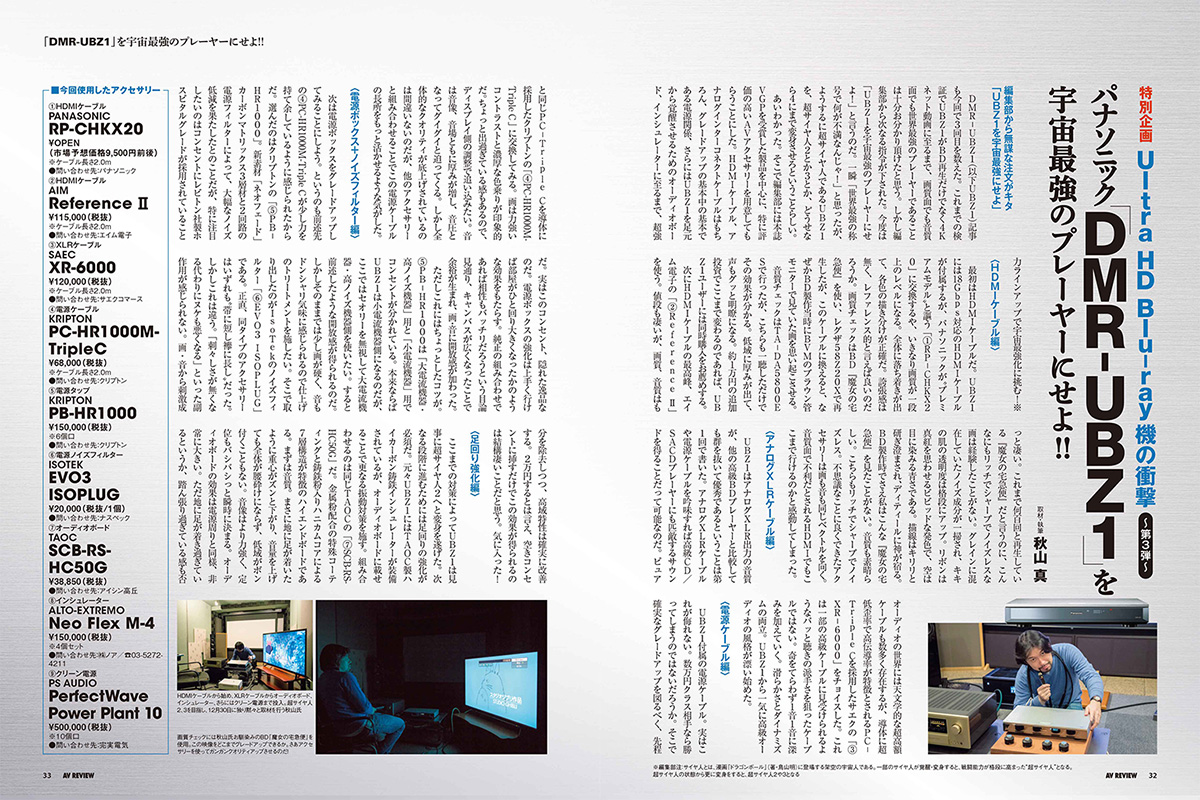 Ultra HD Blu-ray機の衝撃 第3弾! Ultra HD Blu-ray機「DMR-UBZ1」にフォーカスを絞った特別企画「Ultra HD Blu-rayの衝撃〜第3段〜」では、本モデルのクオリティをさらにアップさせ、宇宙最強のプレーヤーに大改造しちゃいます! あらゆるアクセサリーを使い、最高の画質・音質を実現させました。 好評連載中