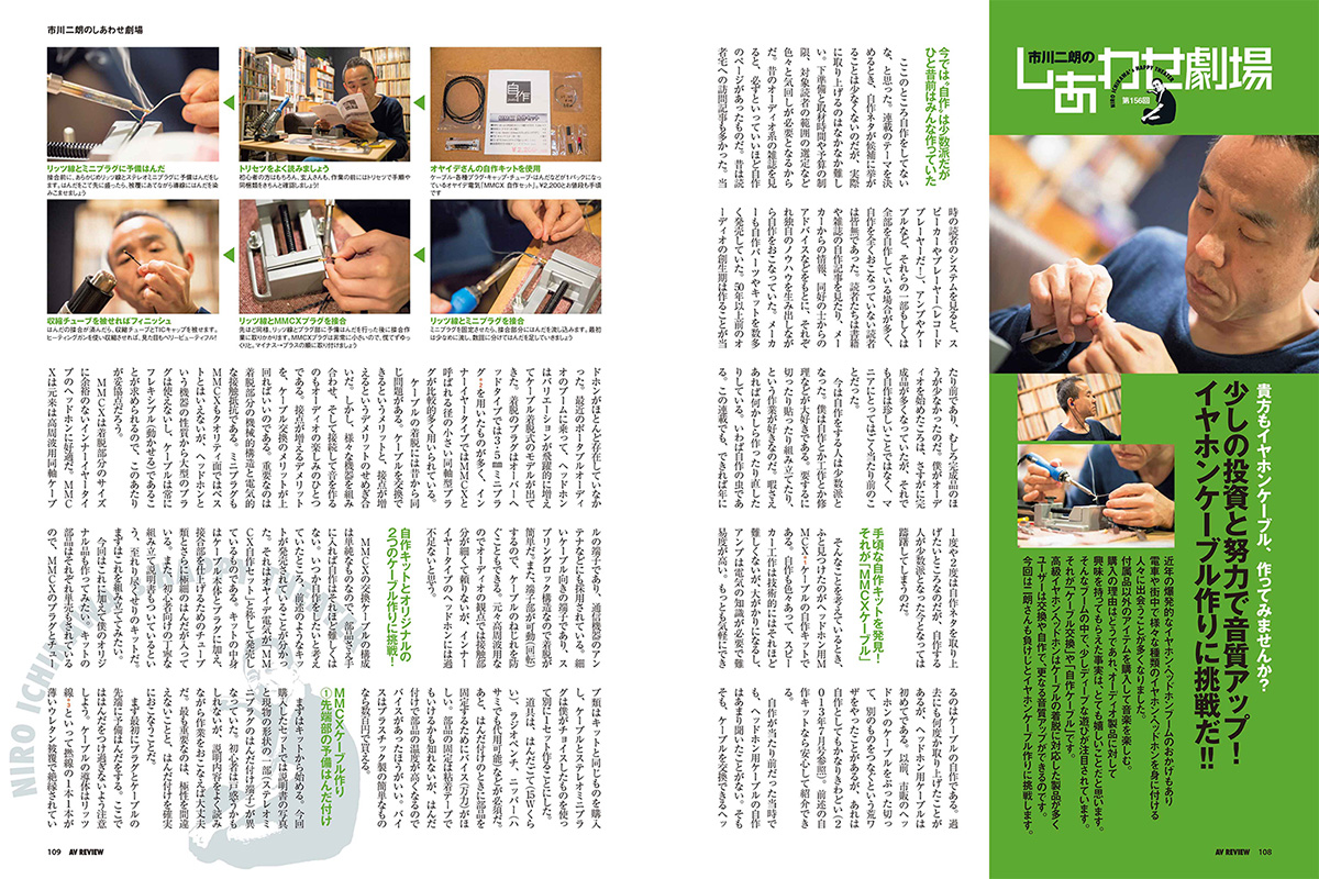 「Audiophile Vision」も掲載! 少しの投資と努力で音質アップ! 今人気のイヤホン・ヘッドホンで使える“イヤホンケーブル”作りにチャレンジします! またオーディオ連載「Audiophile Vision」も掲載中です。 好評連載中