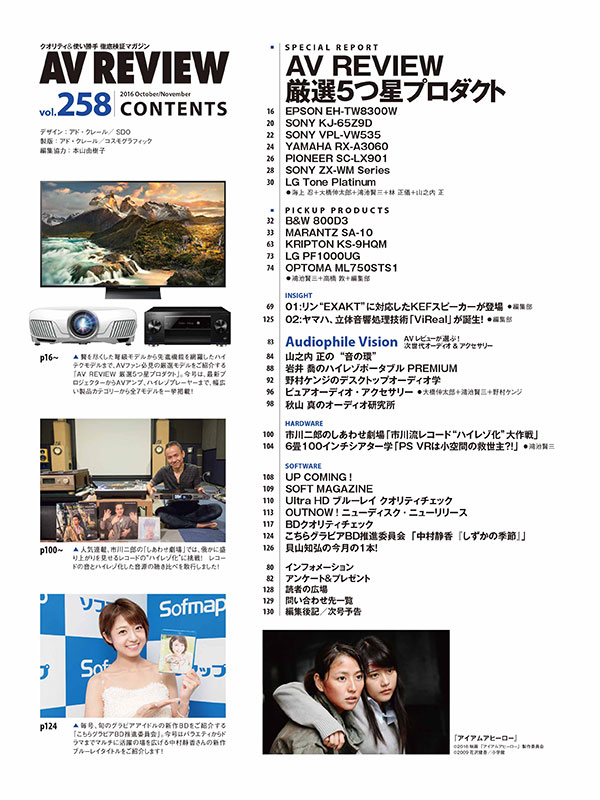 「クオリティ&使い勝手 徹底検証マガジン」 隔月刊 AV REVIEW Vol.258(2016年11月号) / 定価 980円 (税抜) / 平成28年9月17日発売