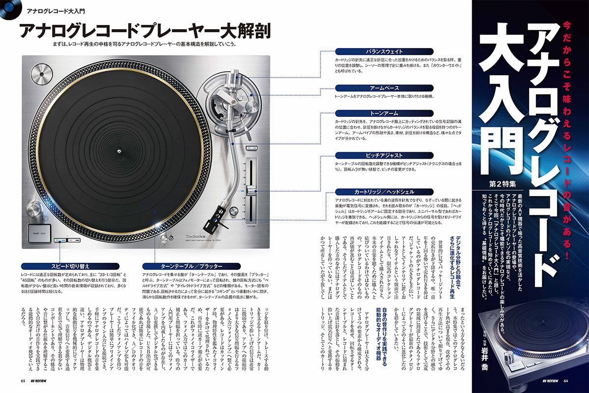「アナログレコード大入門」 最新のAV機器で培った高画質技術を活かしたアナログレコードプレーヤーの登場や、アナログレコードのハイレゾ化の実現など、今の時代だからこそ堪能できるアナログレコードの楽しみ方があります。これからアナログレコードを始めていくにあたり、知っておくと得する“基礎情報”をお届けします。 第3特集100円からできるお手入れ方法を考察!