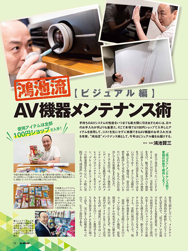 「鴻池流AV機器メンテナンス術」 お手持ちのAVシステムの性能をいつまでも最大限に引き出すためには、日々のお手入れが何よりも重要です。100円ショップで入手したアイテムを使用して、コストを気にせずに実践できるAV機器のお手入れ方法を考察します。“鴻池流”メンテナンス術としてビジュアル編をお届けします。 SPECIAL FEATURE遂にネイティブ4Kモデルが始動!