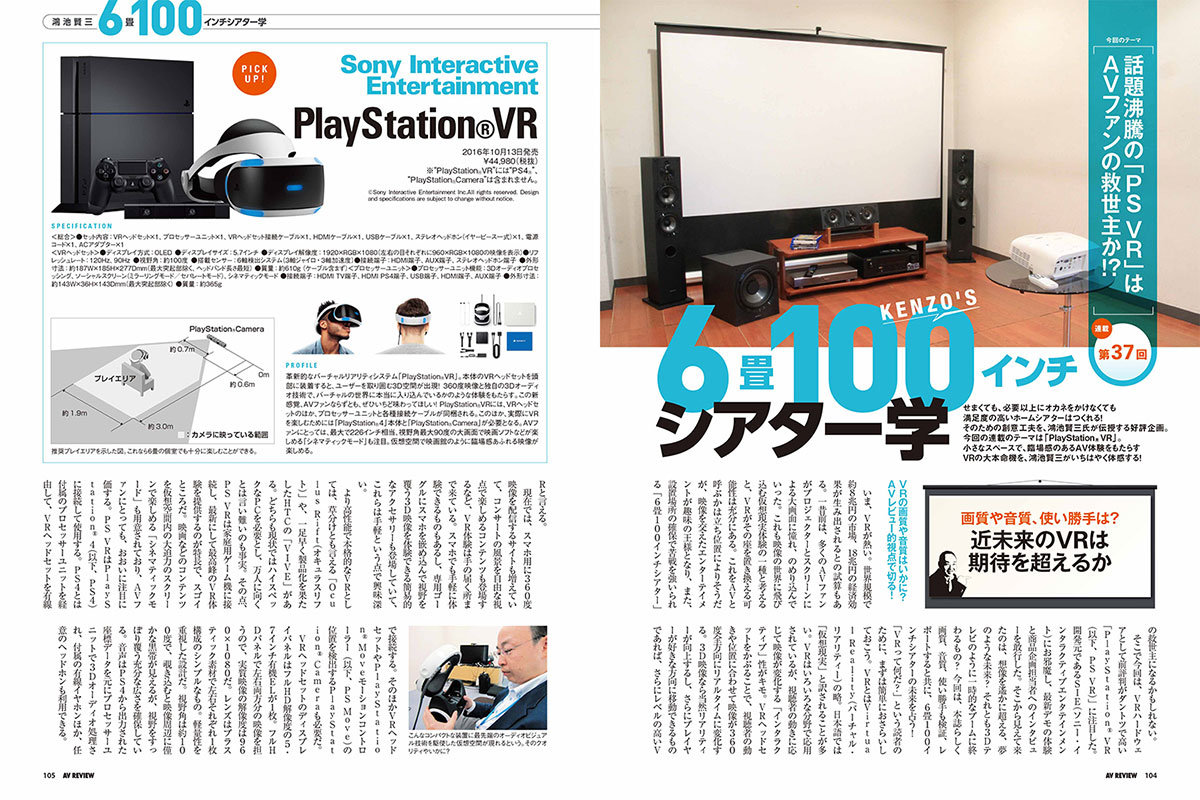 市川流のアナログのハイレゾ化もお届け! 小さなスペースでも臨場感のあるAV体験をもたらしてくれる「PS VR」を、連載「6畳100インチシアター学」で実際にレビュー。連載「市川二朗のしあわせ劇場」では、アナログレコードの音がハイレゾでも残るのか? 市川流のレコード・ハイレゾ化大作戦を実施! 好評連載中