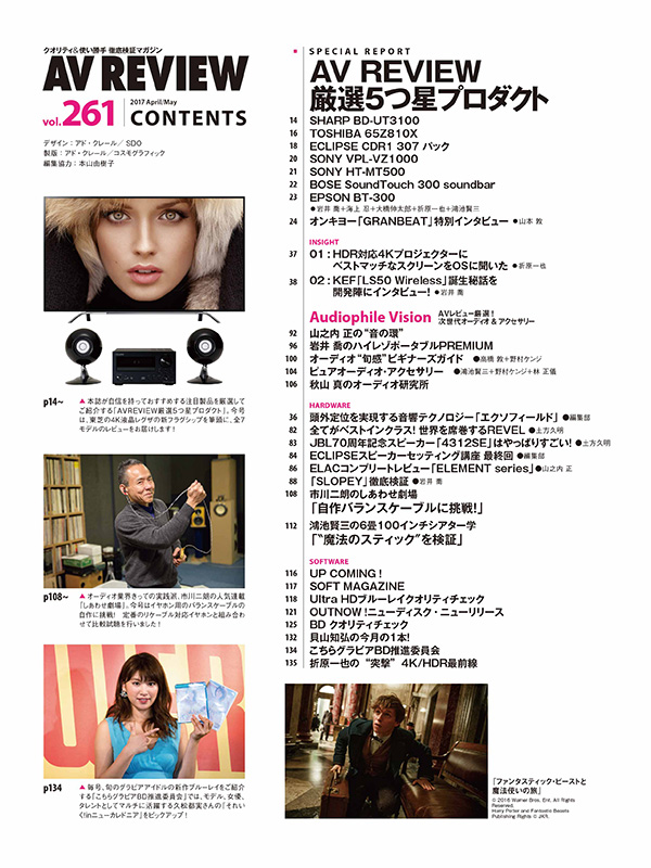 「クオリティ&使い勝手 徹底検証マガジン」 隔月刊 AV REVIEW Vol.261(2017年5月号) / 定価 980円 (税抜) / 平成29年3月17日発売