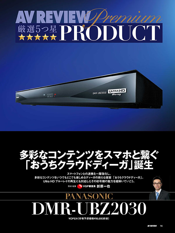 巻頭でお届けする目玉企画「厳選5つ星プロダクト」。今号では、多彩なコンテンツをいつでもどこでも楽しめるディーガの新たな提案「おうちクラウドディーガ」を搭載したレコーダー、パナソニック「DMR-UBZ2030」や、上位機のエッセンスをふんだんに取り込んで大幅リニューアルを遂げた新ミドルクラスのスピーカー、B&W「700シリーズ」、そしてマランツから遂に登場したAuro-3D対応のフラグシップAVアンプ「SR8012」など、AVファン必見の注目モデルを徹底的にご紹介しています! 連載今号も人気連載を掲載