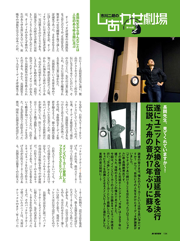 伝説の音が蘇ります! 連載「市川二朗のしあわせ劇場」では、自作の鬼、市川二朗氏が遂にメインスピーカーのユニット交換&キャビネット改造を決行。その結果は如何に? さらに、連載「鴻池賢三の6畳100インチシアター学」では、パナソニックのミラーレスカメラ「GH5」を用いて、4K/HDR撮影にチャレンジします。 好評連載中