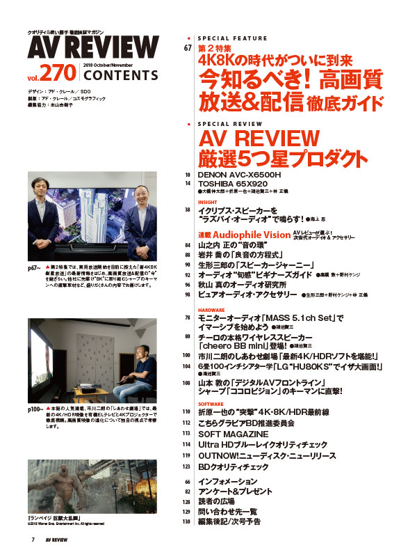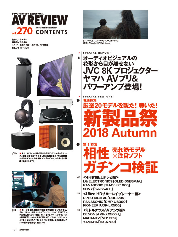 「クオリティ&使い勝手 徹底検証マガジン」 隔月刊 AV REVIEW Vol.270(10/11月号) / 定価 980円 (税抜) / 平成30年9月15日発売