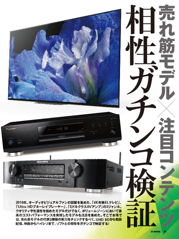 相性がわかる! ガチンコ検証 2018年、オーディオビジュアルファンの話題を集めた、「4K有機ELテレビ」、「Ultra HDブルーレイプレーヤー」、「ミドルクラスAVアンプ」の3ジャンル。クオリティや先進性を極めたモデルだけではなく、ボリュームゾーンにおいて最高のコストパフォーマンスを実現したモデルも注目を集めました。そこで本特集では、売れ筋モデルの代表3機種の実力をチェックするべく、UHD BDから動画配信、映画からハイレゾまで、ソフトとの相性をガチンコ検証します。 第2特集4K8Kの時代がついに到来!