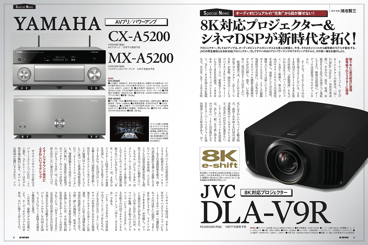 ヤマハのプリ&パワーアンプが登場 プロジェクター、そしてAVアンプは、オーディオビジュアルのシンボルと言える機器です。今冬、その2大ジャンルから超弩級のモデルが誕生します。JVCの民生機初となる8K対応プロジェクター、そしてヤマハのAVプリ/パワーアンプのフラグシップモデルです。その第一報をお届けします。