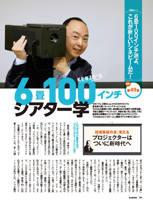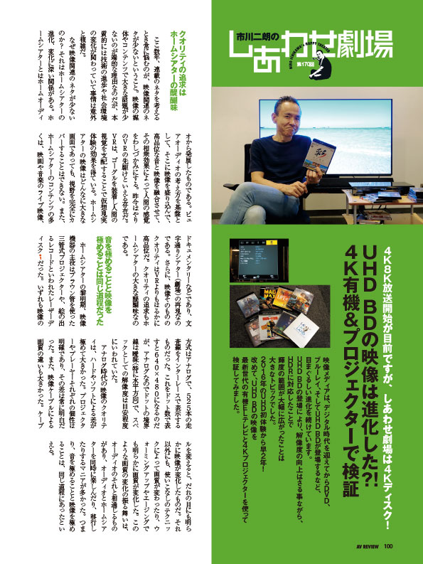 今号も充実の人気連載を掲載します! 連載「鴻池賢三の6畳100インチシアター学」では、革新的な設置性とコンセプトを備えたLGプロジェクター「CineBeam」の最新モデルに迫ります。そして、連載「市川二朗のしあわせ劇場」では、最新の4K有機ELテレビや4Kプロジェクターを使用し、Ultra HDブルーレイの画質を検証します。 好評連載中