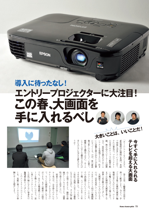 ホームシアターのつくり時は新改築時。といわれても、家をつくる予定はないし、それまで待たなければいけないの? というあなたにうってつけ、お手ごろ価格のエントリープロジェクターが登場しました。思い立ったが吉日、暮らしに楽しい大画面アイテムを迎えてみませんか?