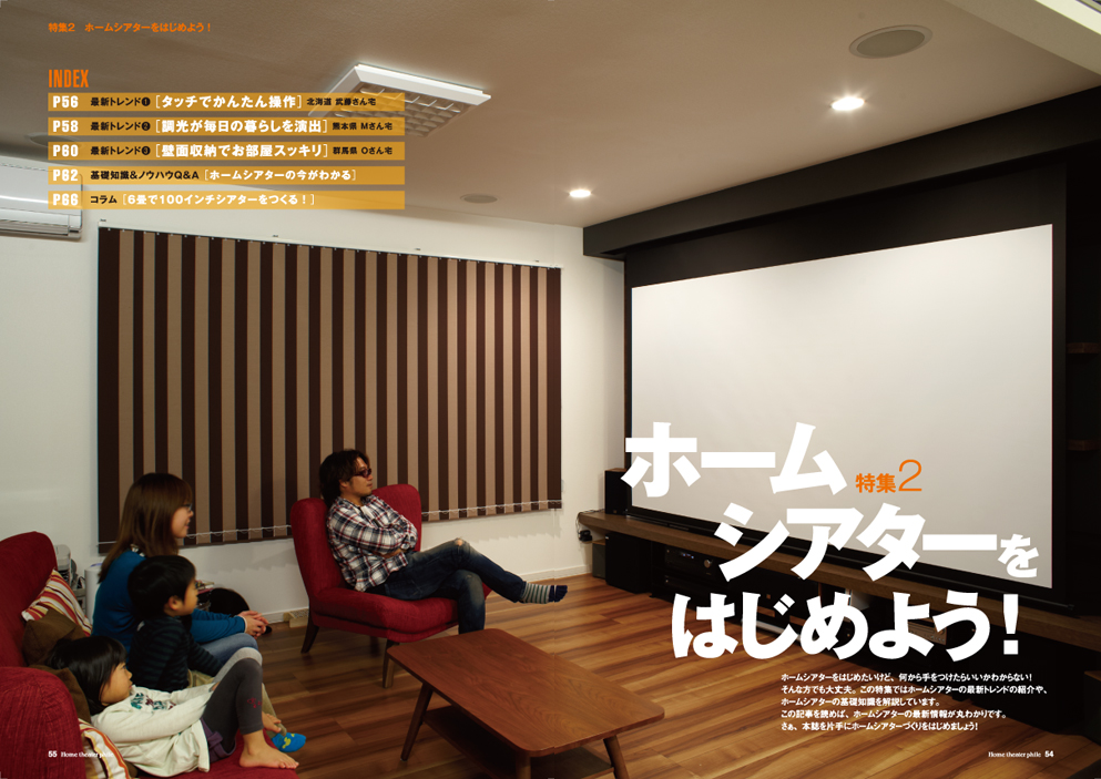 ホームシアターをはじめたいけど、何から手をつけたらいいかわからない! そんな方々のために満を持して贈るのが本特集です。年々進化するホームシアターのトレンドもバッチリおさえ、“今”のホームシアターづくりに役立つ情報をわんさか盛り込みました。もちろん、事前に知っておきたい基礎知識もご紹介。はじめてのホームシアターもこれさえ読めば安心です。さぁ、本誌を片手にホームシアターづくりをはじめましょう!