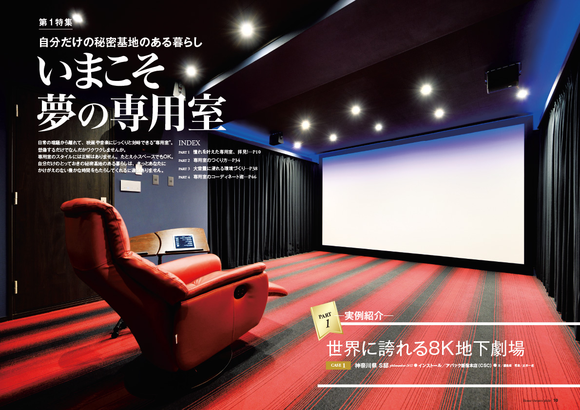 専用室とは、日常の喧騒から離れて、映画や音楽にじっくりと対峙できる至極の空間。映画を楽しむ、音楽を楽しむ、はたまた、子ども達と一緒にゲームを楽しむ、専用室の楽しみ方は暮らしの数だけあります。本特集では、自分だけのとっておきの秘密基地のある暮らしを手に入れる方法を探ってみました。全国の実例のご紹介から、構築ノウハウ、大音量に浸れる環境づくり、専用室のコーディネート術の4部構成でお届けします。