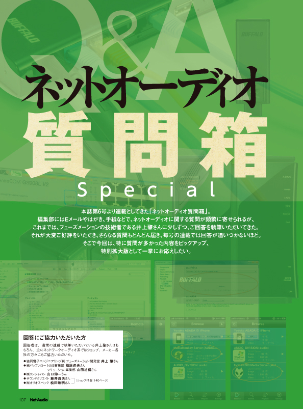 ネットオーディオの世界には、設定の問題や接続のトラブル、ファイルフォーマットの違いなど、さまざまな疑問がつきものです。これまで『ネットオーディオ』誌では、読者の皆様から寄せられた素朴な疑問を連載企画「ネットオーディオ質問箱」にて解説して参りましたが、大きな反響を受け今号では拡大版をご用意。特に多かった質問を中心として、皆様の疑問に一挙にお答えいたします。