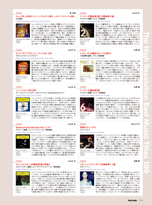 これまで本誌では、「耳タコ名盤をハイレゾで聴こう!」と銘打って、歴史的名盤はもちろん、今後名盤となるであろう作品をご紹介してきました。今回は、年始にあたるタイミングに合わせ、いま聴くべきハイレゾ音源100タイトルを一挙にご紹介しております。オーディオファンなら必携のあのタイトルから、昨年大きな話題を呼んだあのタイトル、さらには発売されたばかりの注目作まで、ハイレゾ音源のいまを一挙に知ることができる保存版となっております。