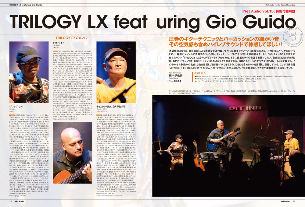毎回、実力派ミュージシャンの演奏をハイレゾクオリティで真空パックしてお届けしているPIT INN LIVE。今回の収録ミュージシャンはTRILOGY LX featuring ジオ・グイド。世界的な評価を獲得するパーカッショニストのヤヒロトモヒロ、日本のアフロ・アメリカンシーンをリードするベーシストのグレッグ・リー、そしてモナコ国際ジャズソリストコンクールにてベストソリスト最優秀賞を受賞したほか、世界各国で数々の実績を誇るギタリスト、ジオ・グイドというそうそうたる面々によるユニットが新宿PIT INNで行ったライヴをハイレゾでレコーディングいたしました。