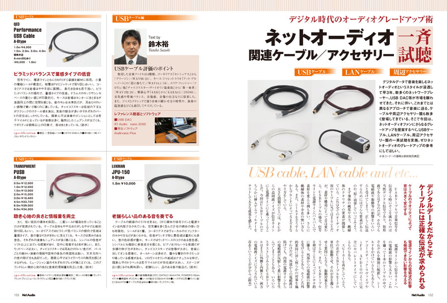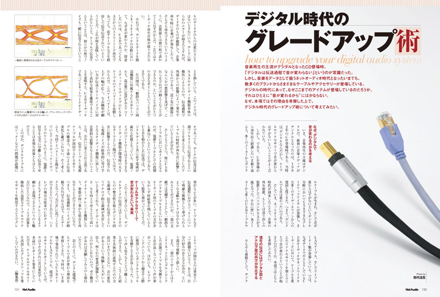 また、音楽制作や高音質配信、そしてメーカーなど、それぞれの分野の第一線で活躍する人物へ「ネットオーディオ時代におけるアクセサリーについて」をテーマにインタビューを敢行。製品選びだけではなく、さらに良質な音を引き出すためのポイントを知ることができる特集となっております。