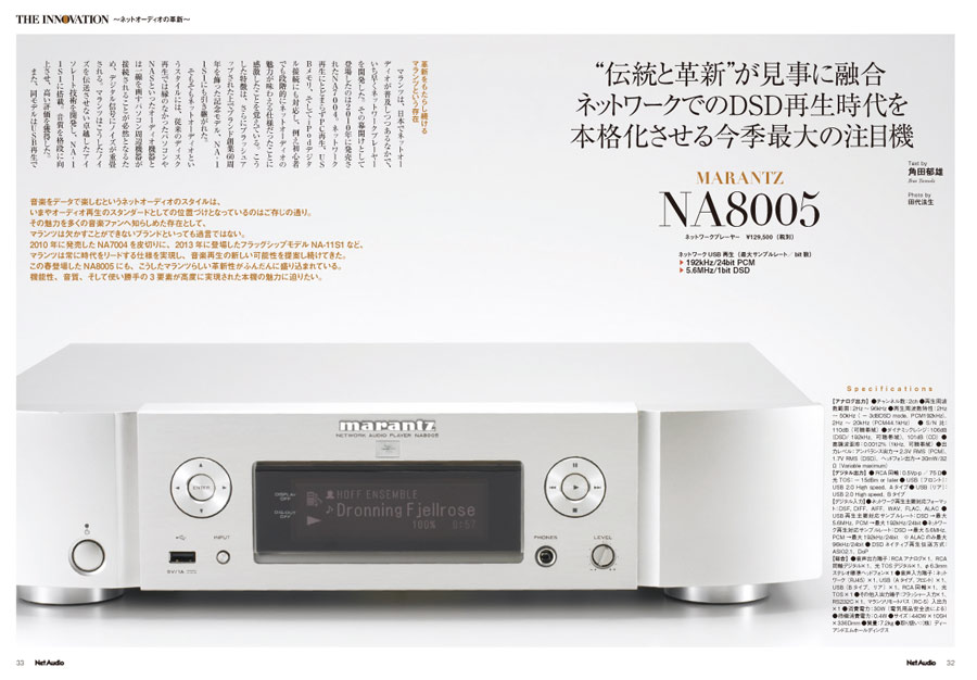 毎号、ネットオーディオ界に大きな革新を示すであろう製品をご紹介する本企画。今回はDSD対応ネットワークプレーヤーとして発売以来大きな話題を呼んでいるマランツのNA8005、高精度なUSB DACと高いヘッドフォン駆動力を実現し、早くも高い注目を集めているパイオニアのU-05、ネットオーディオの火付け役となったRMEのFirefaceシリーズ最新モデルFireface 802、そしてOPPOブランド初となるヘッドフォンシステムHA-1、PM-1をクローズアップ。それぞれの機器に秘められた革新をレポートいたします。