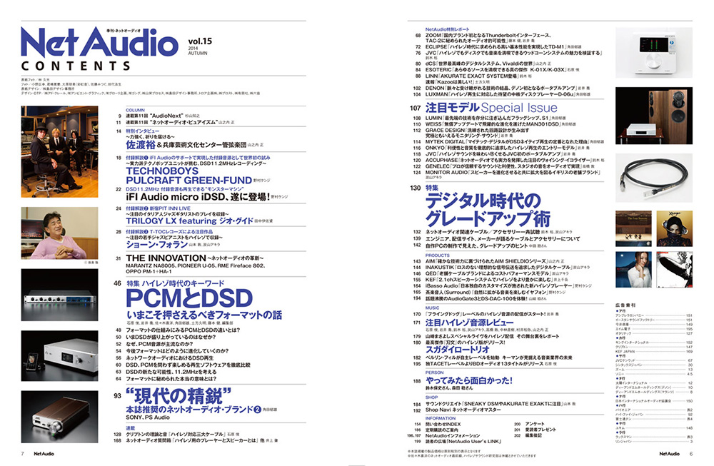 季刊 Net Audio vol.15/定価1,300円(税込)/平成26年7月19日発売 |