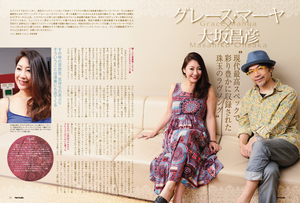 現代の日本のジャズシーンにおいて、トップクラスの実力と知名度を誇るシンガー&ピアニスト、グレース・マーヤ。ジャズドラマー、大坂昌彦プロデュースによる最新作『ラヴ・ソングス・フォー・ユー』が早くも話題沸騰中ですが、今回は本作と同日に収録されたスタンダード曲「サマータイム」をDSD音源でご用意しました。Pyramix Systemsを使用したDSD11.2MHzレコーディングという、現代考えられる限りの最高スペックで収録された本作の「ライヴ感」は、天才中の天才と称されるグレース・マーヤの実力をより際立ったものとしています。アルバム、そして本誌読者のためのボーナス・トラックとなった「サマータイム」で、極上の音と演奏をお楽しみください。