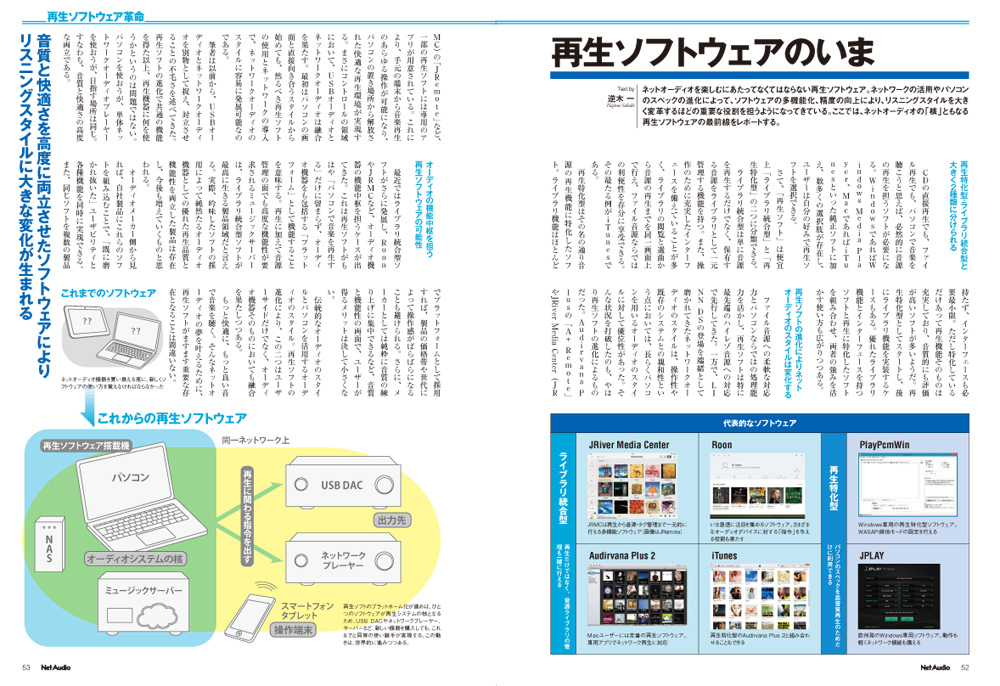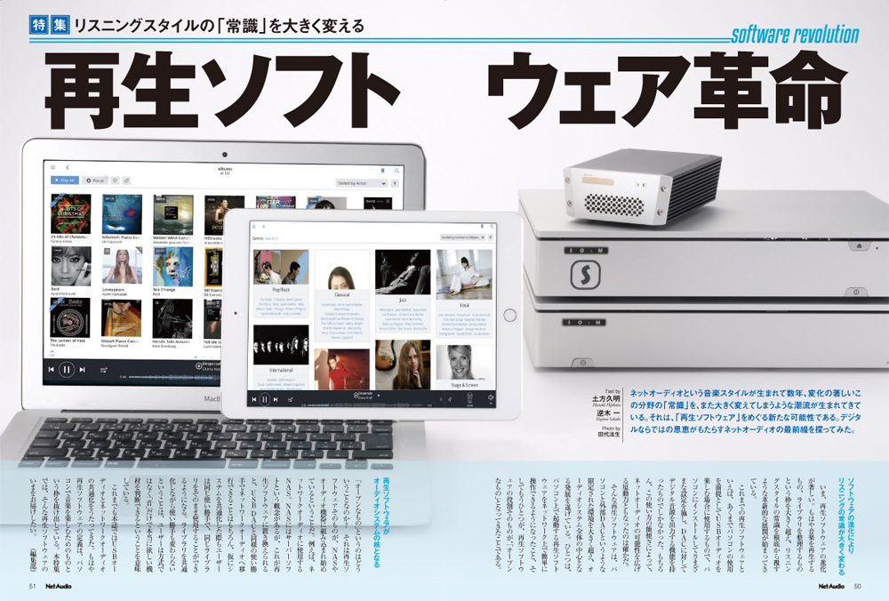そこで今回は、そんな最先端の再生ソフトウェアを徹底解説。一体どこがいままでの再生ソフトウェアと異なるのか、実際の使い方はどうなのかなど、本誌ならではの目線で徹底的に解説しております。さらには、そんな再生ソフトウェアをインストールできるサーバーや次世代を示唆する再生機器達のレポートも存分に展開。どこよりも最先端を網羅した本特集は、まさに『ネットオーディオ』誌だからこそ読める内容となっております。