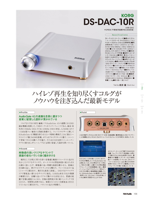 KORG「DS-DAC-10R」/YAMAHA「A-U671」/NuPrime「WR-100」/SONY「HAP-S1」/M2TECH「EVO DAC TWO Plus!」/CAMBRIDGE AUDIO「CXA80」/TEAC「NT-503」/DELA「N1A」/GRACE DESIGN「m920」/PIONEER「A-70DA」/LINN「SNEAKY DSM」/aria「aria piccolo」