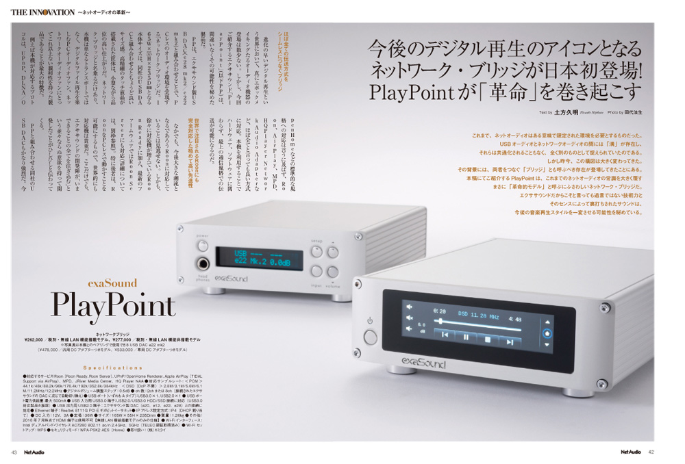 毎号、ネットオーディオ界に大きな革新を示すであろう製品をご紹介する本企画。今回は、いま世界を席巻するRoonをはじめ、UPnPやDLNA、HQ Player NAAなどさまざまな伝送プロコトルに対応したネットワークブリッジ「Play Point」と、ラックスマンが送り出す究極のエントリー機「DA-150」が登場。ネットオーディオ関連製品の最先端を物語る、これら2つのモデルの概要から音、使いこなしまで徹底的に解説しております。