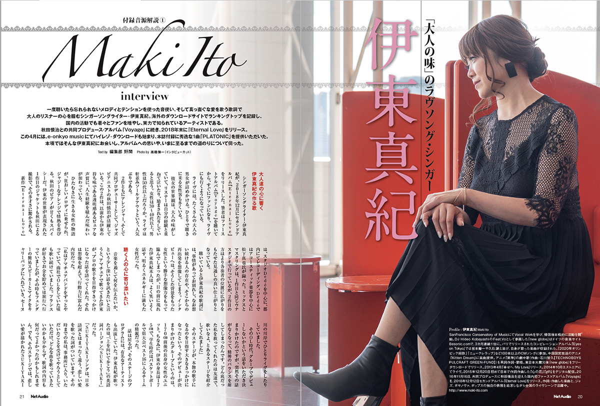 毎号、ご好評をいただいている付録企画「録り下ろしハイレゾ音源」。今号も実力派ミュージシャン達によるバリエーション豊かな楽曲をご用意いたしました。セカンド・アルバム『Eternal Love』をリリースし、アルバムを引っさげてのツアーも決定するなど、いま乗りに乗っているジャズ・シンガー伊東真紀、クラシック界だけではなくフィギュア・スケートでのコラボレーションなど、さまざまなフィールドで活躍する世界的ピアニスト福間洸太朗、そして自身として初めてとなる編曲に挑んだアルバム『WATER SONG』で注目を集めるサキソフォニスト、川嶋哲郎がPIT INNで行った一期一会のパフォーマンスを収録したライヴ音源など、いずれも音質だけではなく楽曲の世界も楽しめる作品達です。そんな実力派プレイが、ハイレゾでどのような世界を聴かせてくれるのか。その結果はぜひ本誌付録音源でご確認ください。